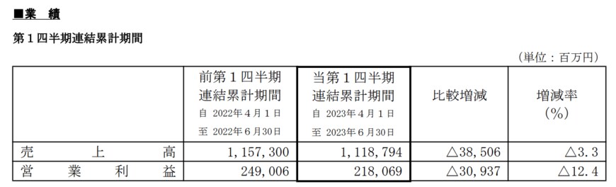 営業利益は、前年同期比▲12.4%の2181億円となった。
