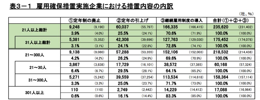厚生労働省は毎年「高年齢者雇用状況等報告」の提出を企業に求めている。
