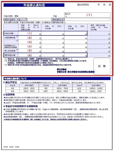 最大で4つのお金が年金から天引きされるため、額面と振込額は一致しないことが一般的です。