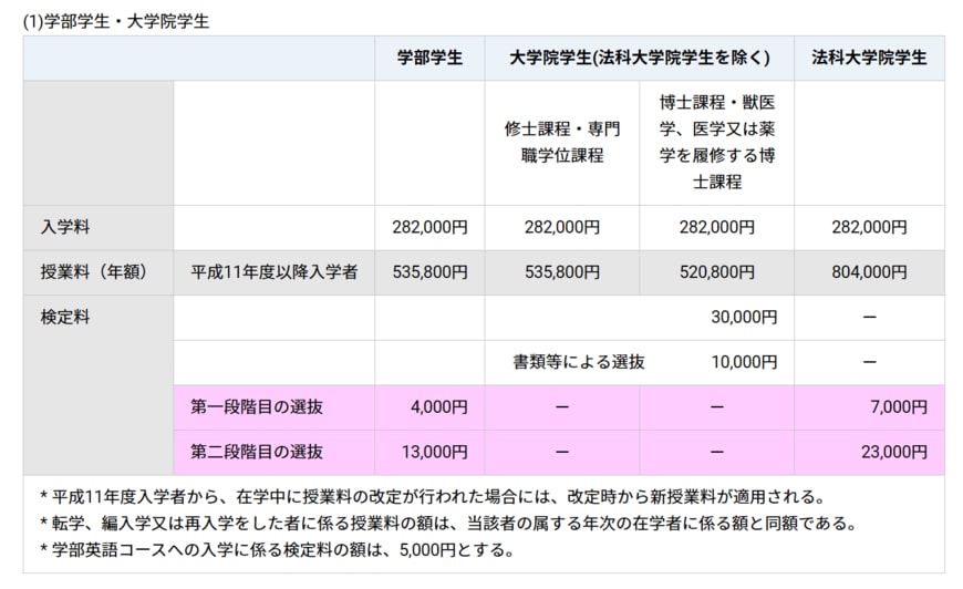 まずは、国立大学の学費についてチェックしていきましょう。東京大学の学費は、以下の通りとなっています。