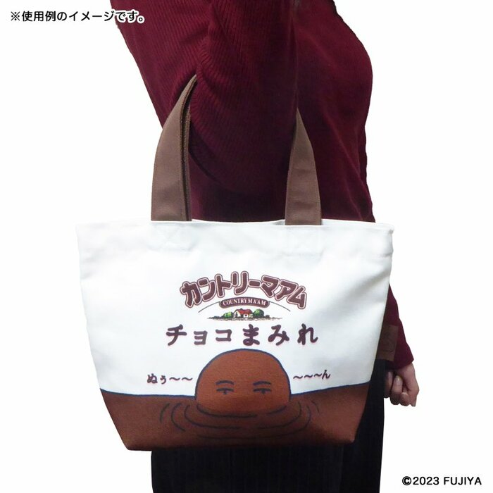 カントリーマアムのチョコ感をぐっとアップさせた濃厚な「チョコまみれ」がデザインされたミニトートバッグです。人気キャラクター「まみれさん」の「ぬぅ~ん」と何ともいえない表情が印象的。お散歩やちょっとしたおでかけにぴったりのコンパクトなサイズで、お弁当バッグとしても活躍してくれそうです。