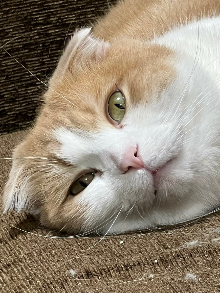 シュッと片目を細めながら、リラックス感に満ちた表情で視線を送るとろくん。その面持ちや体勢からは、とろくんの悠々たるくつろぎぶりが伝わって来ます。