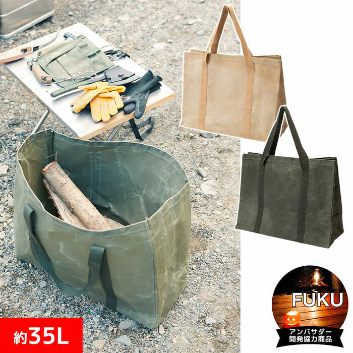 主にキャンプを楽しむ方に向けて開発された大容量トートバッグです。キャンプでの重たい薪などを入れることが想定されており、丈夫で耐久性が抜群。