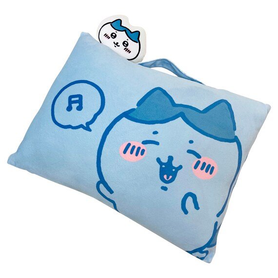 枕の端からは、ハチワレがひょこっと出ているかわいらしいデザイン!持ち手が付いており、ミニサイズのため持ち運びも便利です。ちいかわ、うさぎ、モモンガの全4種類あります。