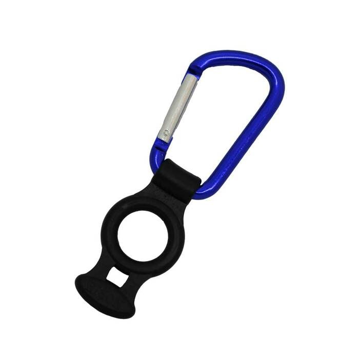 カラビナ仕様で、バッグや自転車、ベビーカーなどさまざまな場所に吊り下げられるボトルホルダー。
