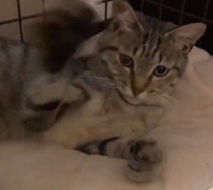 しかし、続く動画におさめられていた「数日後の姿」を見てみると……おもちゃにじゃれるメロンくんの姿があります。ケージの中で俊敏に手を動かし、おもちゃに夢中になっている様子。視線や佇まいからは穏やかな雰囲気が感じられます。お迎え当初との変化がうかがえる光景に、心が温まりますね。