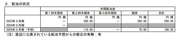 商船三井の株式を1年前に買い、持ち続けたとすると、「2023年3月期の中間配当」と「2023年3月期の期末配当」の計2回を受け取ることができます。