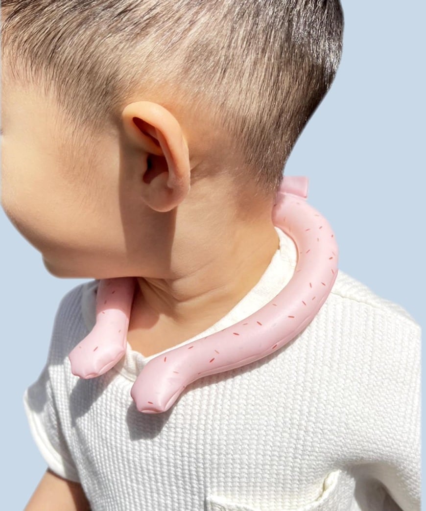 28℃以下で自然に凍結し、繰り返し使えるクールネックバンド。かけておくだけで首元を冷やしてくれ、暑い日も快適に過ごせます。