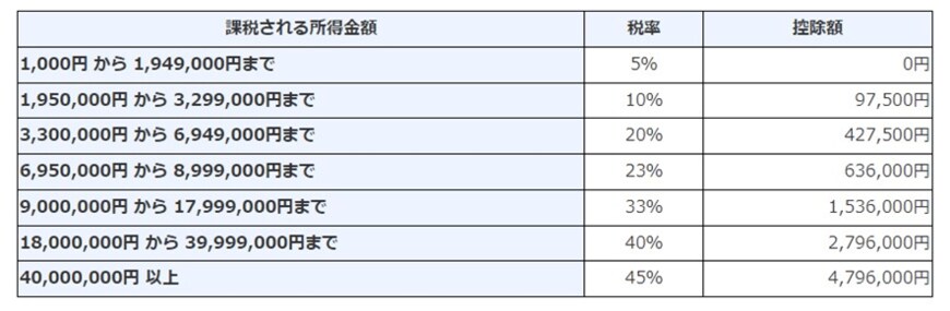 この課税所得を元に所得税を計算してみましょう。なお、税率は下図の「所得税の速算表」より23%が適用されます。
