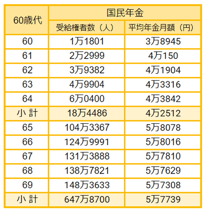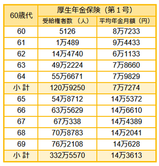 厚生労働省が2022年12月に公表した「令和3年度厚生年金・国民年金事業の概況(2021年度)」によると、60歳代の年金受給額の平均は以下の通りです。