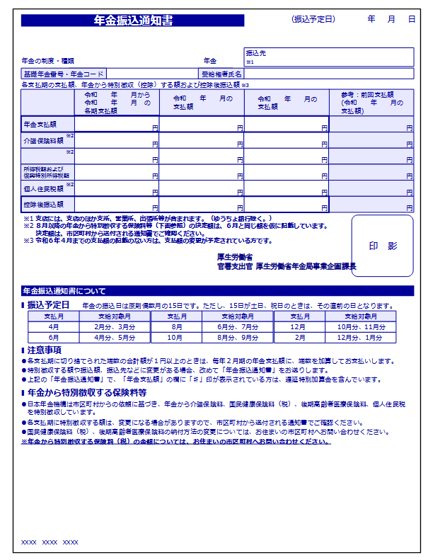 実際に振り込まれる金額については、「年金振込通知書」にて確認しましょう。