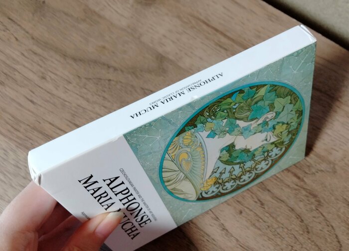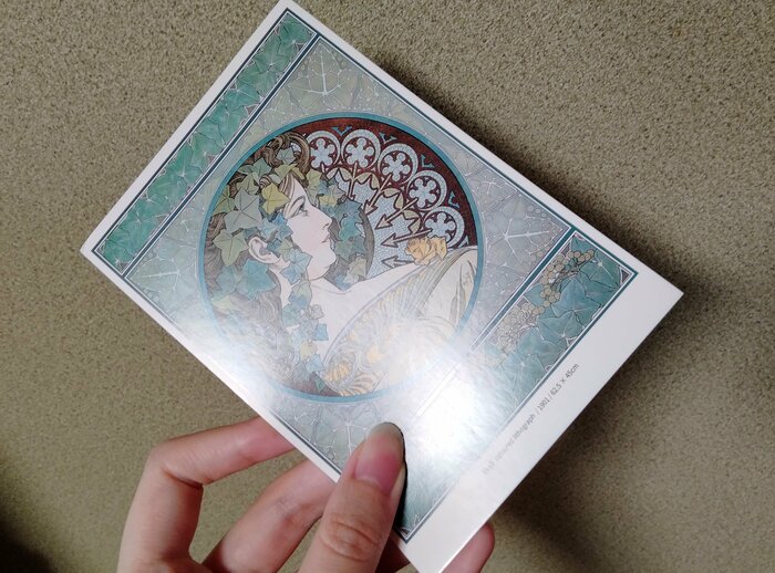 2023年8月にも、驚きのアイテムが販売されているのを発見しました。人気の画家である「ミュシャ」の絵画のポストカードセットです。
