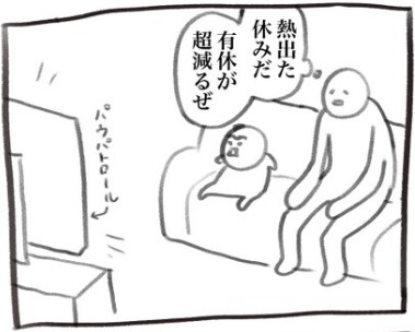 そしてついに、大声で放送禁止用語を叫び始めてしまいます。子どもらしい力の発散方法ですが、パパはヘトヘトの様子…。熱で外に出られない分、家の中でできる体力発散方法を見つけたいものですね。
