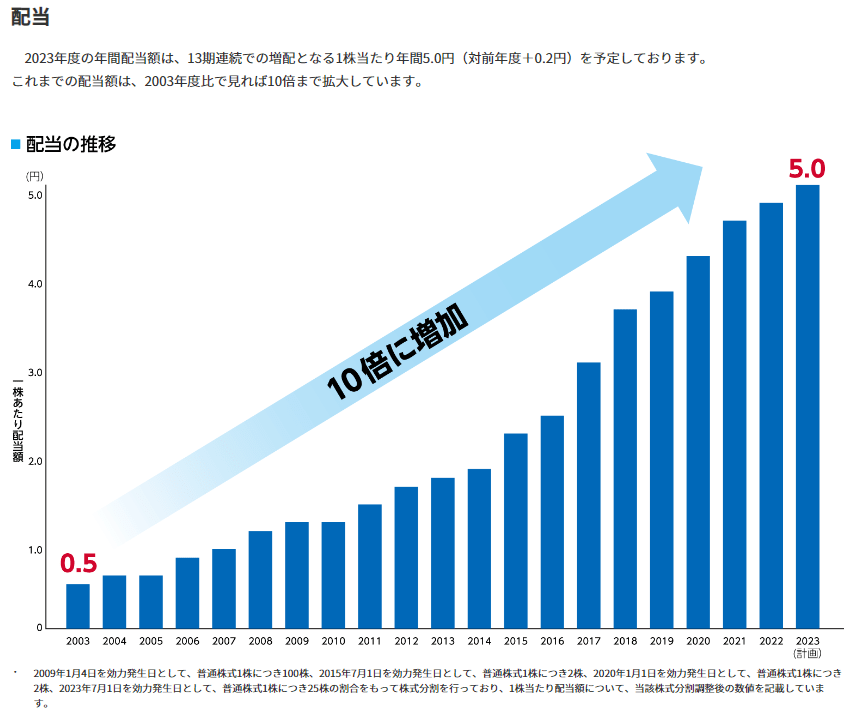 最後に日本電信電話(NTT)の株価と配当金の推移を確認しましょう。