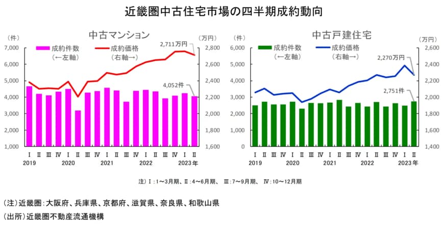 近畿圏不動産流通機構が2023年7月21日に発表した2023年4~6月期の近畿圏の中古住宅価格は、前期比で下落しました(【図表】参照)。