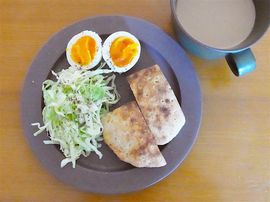 画像はある日の朝ご飯。塩麴漬けのゆで卵とキャベツにオリーブオイルとドライハーブ(バジルとオレガノ)をかけて、ちょいとお洒落感を出してみました。ハーブがあるとそれだけでおいしくなるので、他の調味料いらず。パンは今、研究中の自家製天然酵母で焼いてみました。不格好だけど、おいしくてお気に入り♪