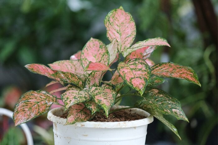 アグラオネマは葉に入る独特の模様が特徴。コンパクトな樹形にまとまるので、浴室でも場所を取りません。