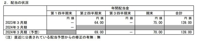 コマツの株式を1年前に買い、持ち続けたとすると、「2023年3月期の中間配当」と「2023年3月期の期末配当」の計2回を受け取ることができます。