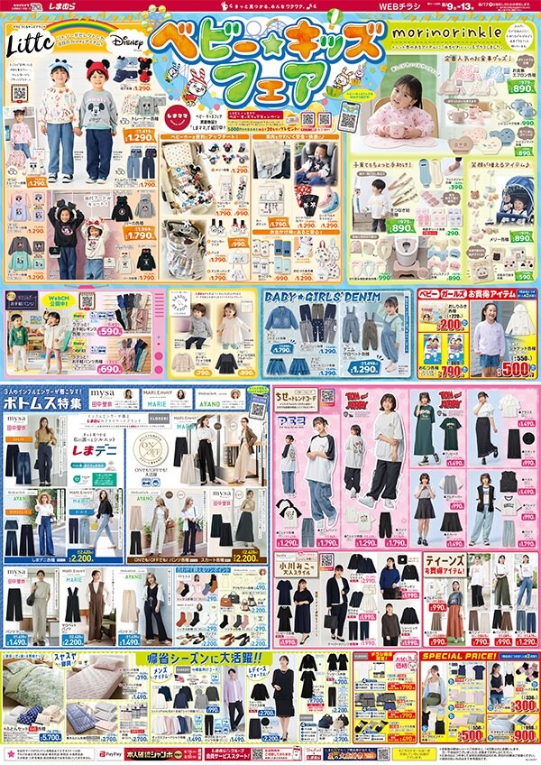 プチプラでオシャレを楽しめる「しまむら」しまむらのWEBチラシ最新版が2023年8月9日(水)に更新されました。