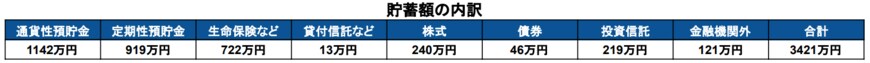 さきほど確認した、貯蓄3421万円の内訳は以下のとおりです。