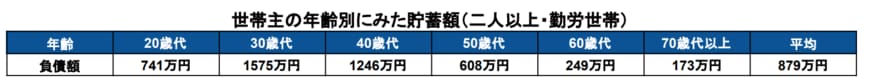 【20~70歳代以上】平均負債額はいくらか
