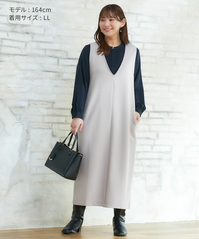 【ハニーズ】ポケット付き! ストンと落ちるシルエットだから細見えを叶えてくれる「Vネックジャンスカ」