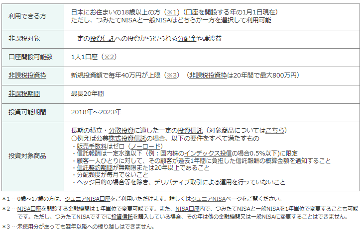 年間に投資可能な額は40万円で、2023年がつみたてNISAで投資できる最後の年となっています。