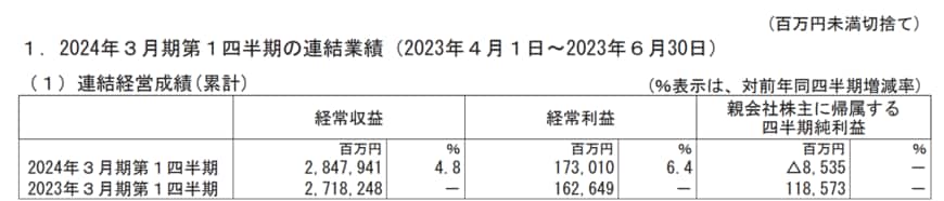 日本郵政株式会社(6178)(以下「同社」という)が、2024年3月期第1四半期連結決算(対象期間:2023年4月1日~2023年6月30日)を発表した。
