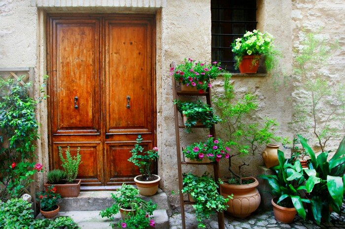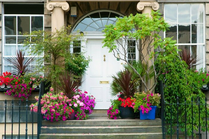 壁面に這わせる作業は手間がかかりますが、玄関先であればアーチを置いたりして、ツル性植物を楽しむことができます。アーチへ誘引する作業は必要になりますが、開花時の景色は圧巻です。