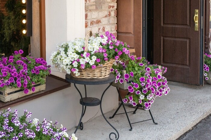 花の鉢や寄せ植えの鉢はできれば、フラワースタンドに置くのがおすすめ。