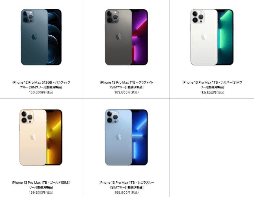 - iPhone 13 Pro Max 1TB - シエラブルー(SIMフリー)[整備済製品]:18万9800円