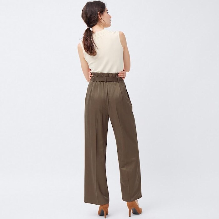 こちらがGUで販売されている「ベルト付きハイウエストタックパンツZ」です。ハイウエスト仕様のパンツなので、脚を長く見せてくれます。