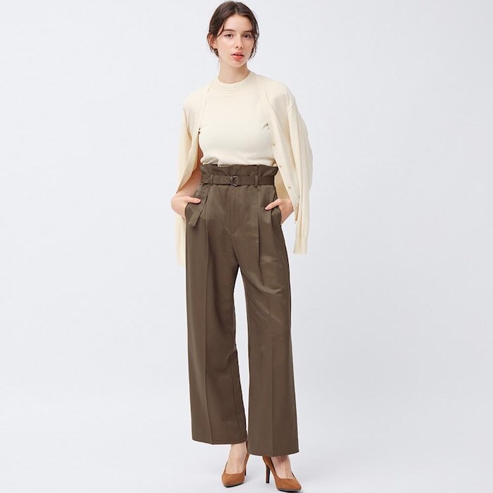 骨格ウェーブ体型の悩みを解決してくれそうなのが魅力ポイント! GUの「ベルト付きハイウエストタックパンツZ」