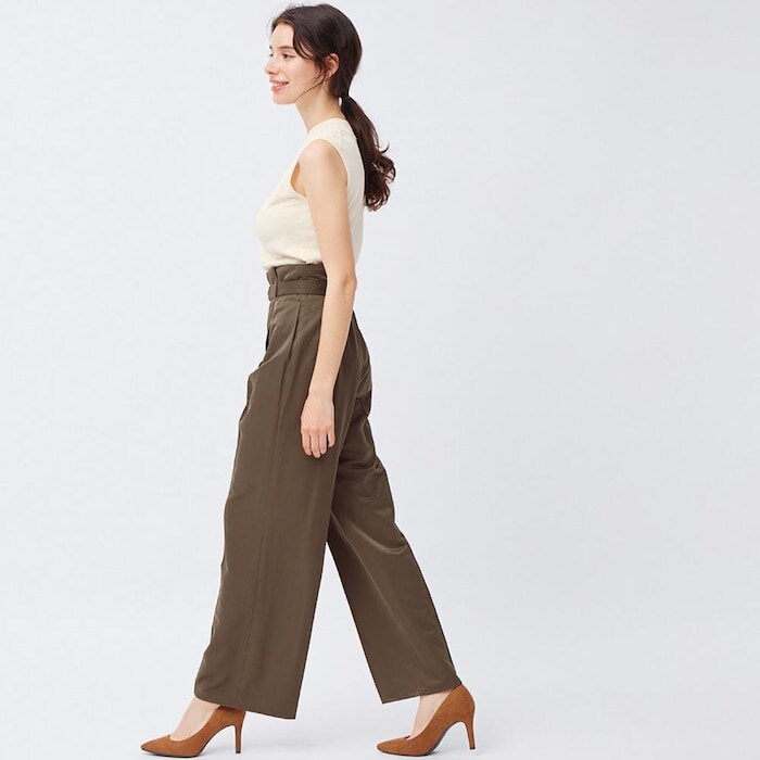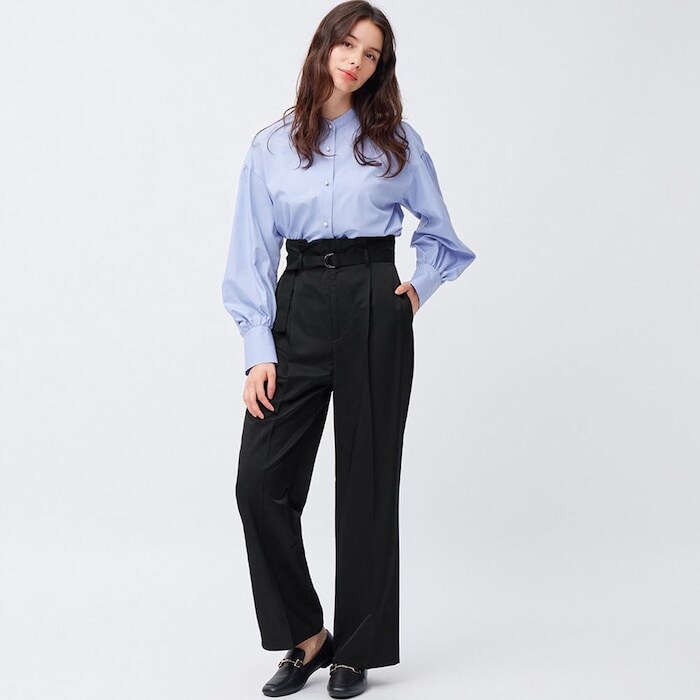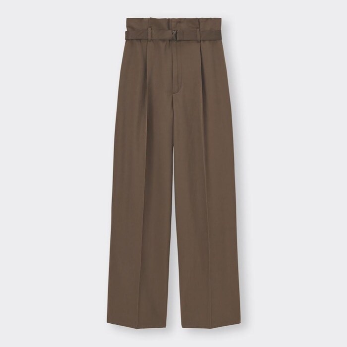 GUの「ベルト付きハイウエストタックパンツZ」はどんなコーデにも使える! オフィスコーデにも!