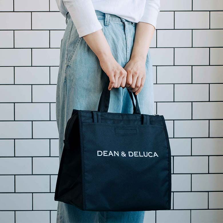 ディーン&デルーカのロゴ入りの保冷バッグです。ハンドルは2種類の長さがあり、中身の重さやシチュエーションに合わせて選べます。