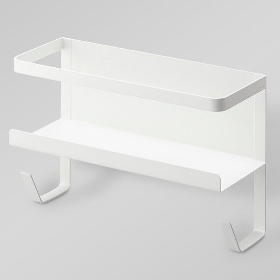 洗濯機横のデッドスペースを有効活用できるホースホルダー付ラック。置き場所に困る給水ホースや洗濯用洗剤、ランドリー小物などをマグネットで洗濯機の側面に一括収納できる便利アイテムです。
