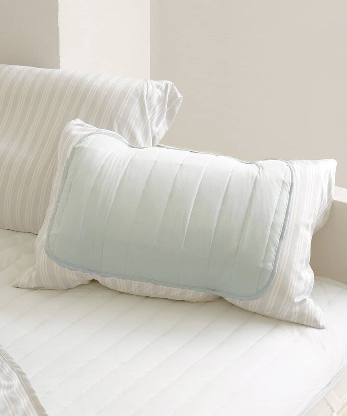 とろける肌触りの冷感素材を使った枕パッドです。手持ちの枕にかぶせて使います。ゴムバンドが付いているので手軽に付け外しができるのがいいですね。