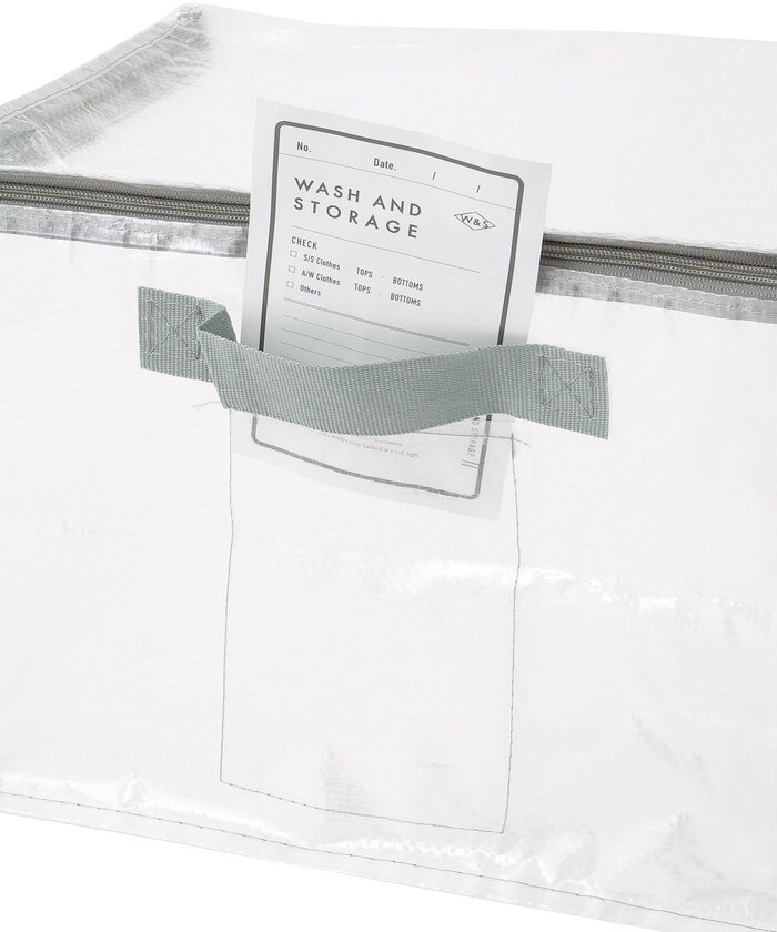 こちらは少し大きいLサイズのクリアボックスバッグです。水と汚れに強い生地なので、収納のほか、雨天時にお気に入りのバッグや荷物が濡れないようにするためのケースとしても活用できそうですね。