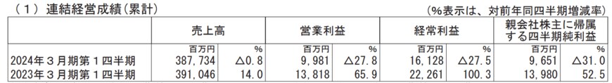 凸版印刷株式会社(7911)(以下「同社」という)が、2024年3月期第1四半期連結決算(対象期間:2023年4月1日~2023年6月30日)を発表した。