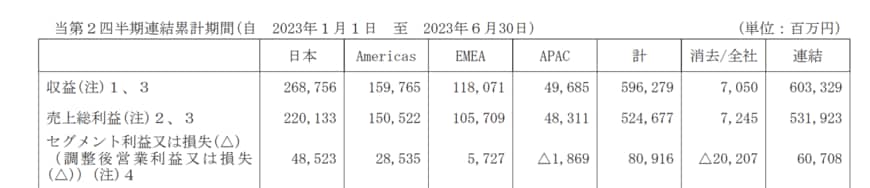 同社は、「日本」「Americas」「EMEA」「APAC」の4つを報告セグメントとしている。
