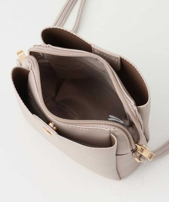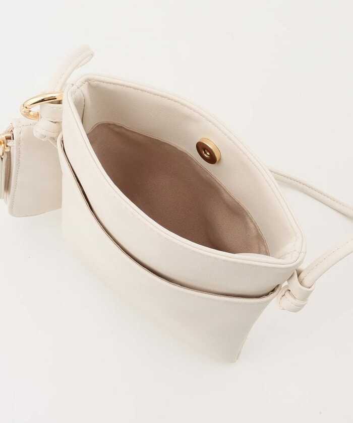 ショルダーバッグに小さめのポーチが付いています。鍵や小銭などを入れるのにぴったりですね。ショルダーバッグそのもののフラットなフォルムも、こなれ感があっておしゃれです。