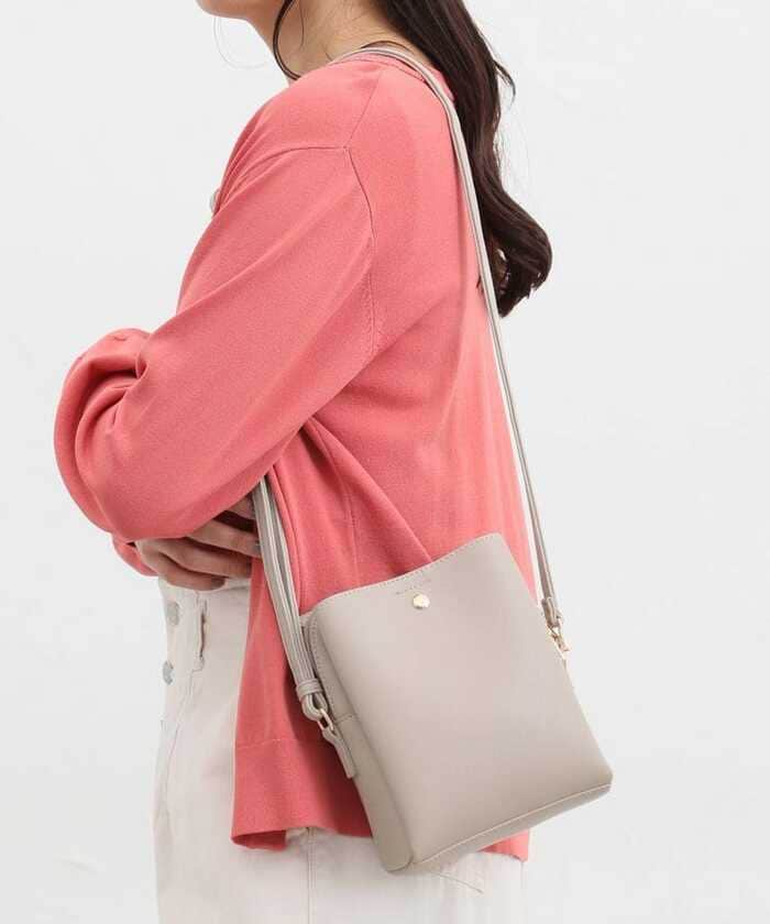 シンプルなスクエアタイプのフォルムが、大人の可愛さを演出します。あおりポケットが両面についているので、こまごました小物も整理しやすいでしょう。高級感がある高見え素材もうれしいですね。
