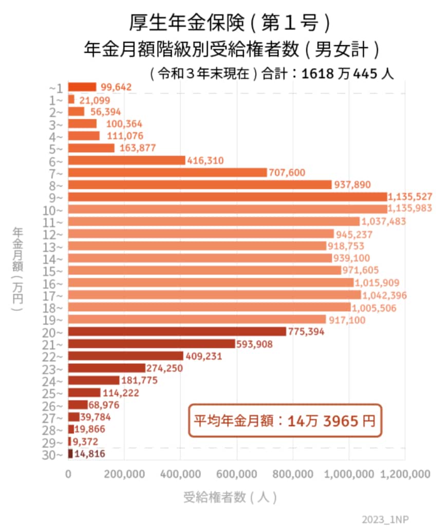 ここからは、厚生労働省の資料データを参考に、受け取れる年金の平均月額をみていきましょう。