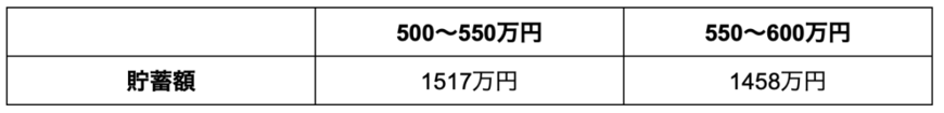 「年収500〜550万円世帯」「年収550〜600万円世帯」ともに、貯蓄額は平均で約1500万円近くとなっています。