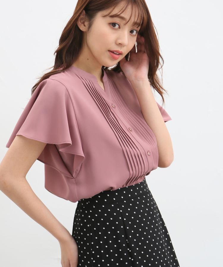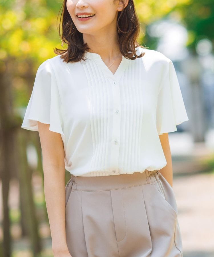 フロント部分に入れられたピンタックと、ふわりとゆれる袖が上品な印象を与えてくれるピンタックブラウス。