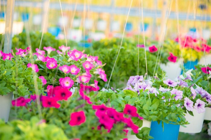 ジニア、センニチコウ、ニチニチソウ、ペチュニア、カリブラコア、マリーゴールド、ヘリクリサムなど