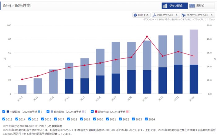 オリックスの株式を1年前に買い、持ち続けたとすると、2023年3月期の中間配当と期末配当の計2回を受け取ることができます。