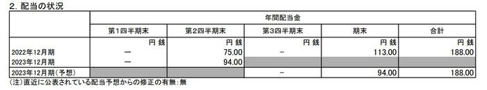 - 2023年6月期・中間配当:94円