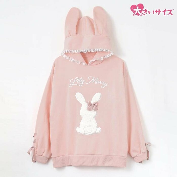 立体的なうさぎが愛らしい「プルパーカ」です。サイズはMから3Lまで展開されています。