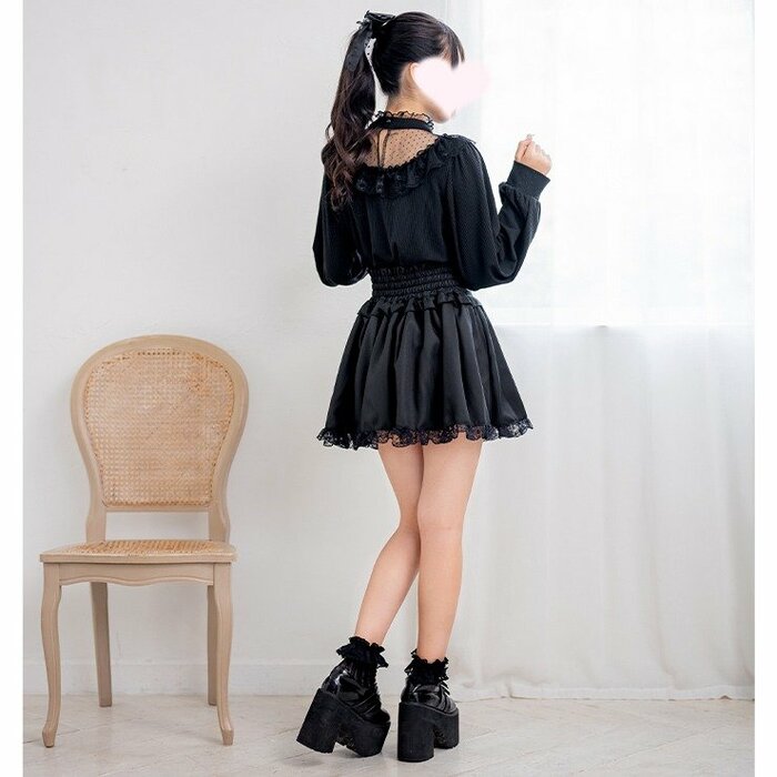 デコルテ部分はドット柄のチュール仕様となっています。おしゃれな透け感がセクシーさもプラスしてくれます。大きめのレースやギャザースリーブなど、全体的にガーリーな雰囲気が漂うアイテムです。